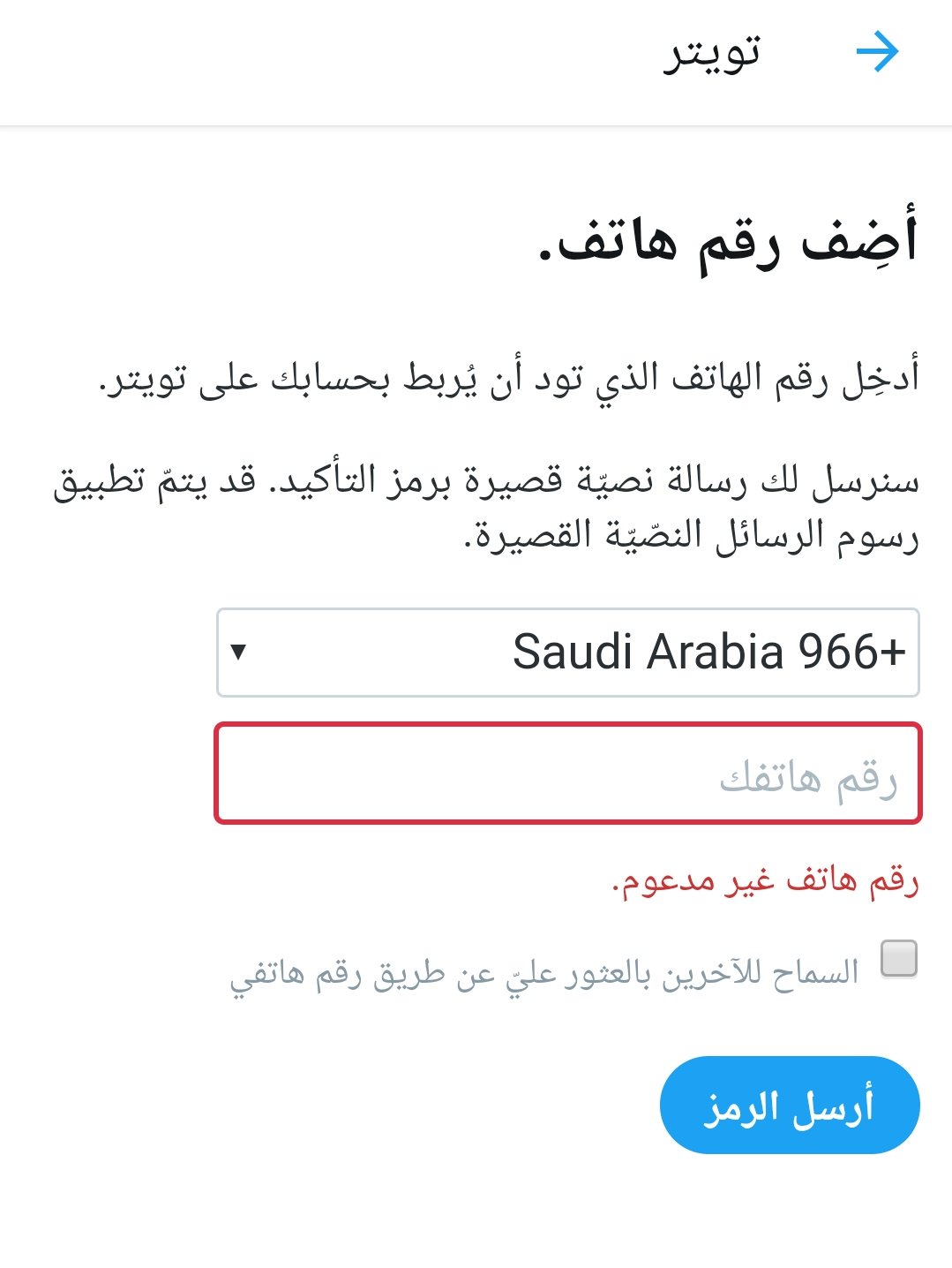 حل مشكلة رقم الهاتف في تويتر