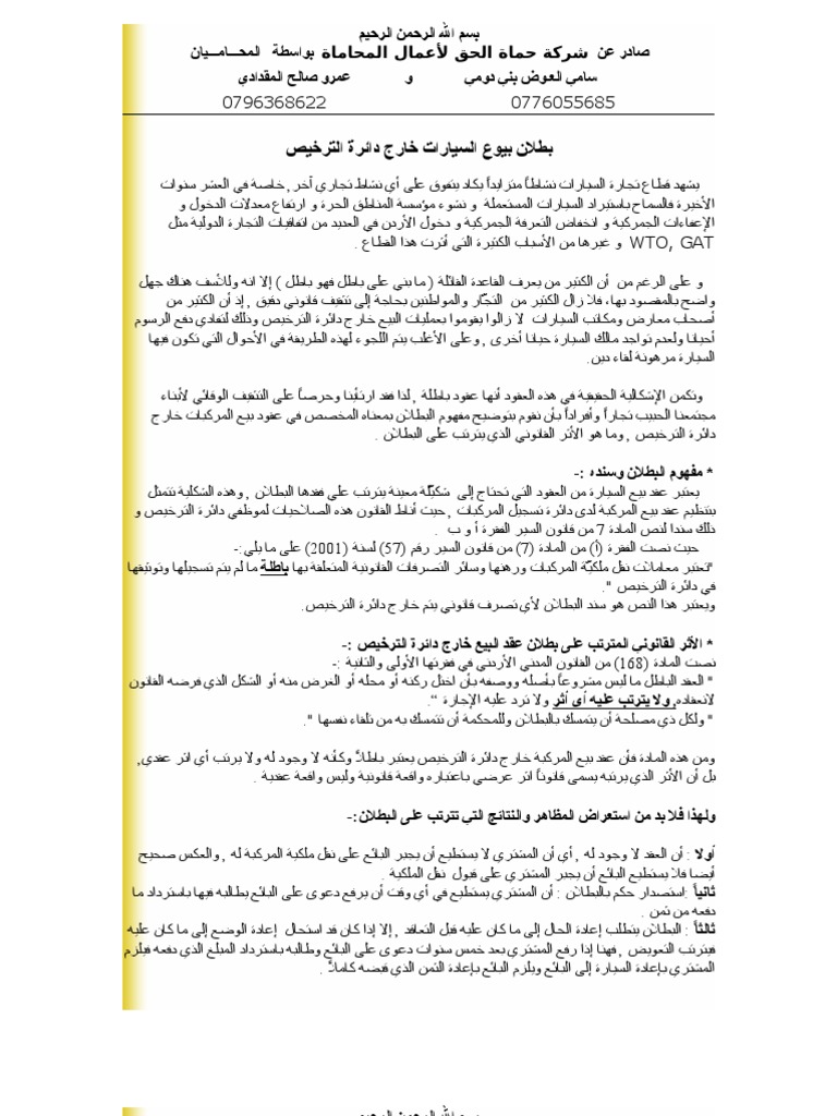 بطلان بيوع السيارات خارج دائرة الترخيص